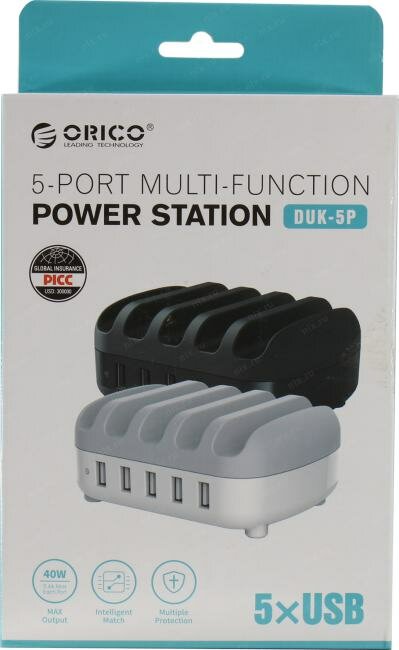 Зарядное устройство Duk-5p (черный), 5*USB2,4А/5В; 60 Вт, пластик Orico-duk-5p-bk .