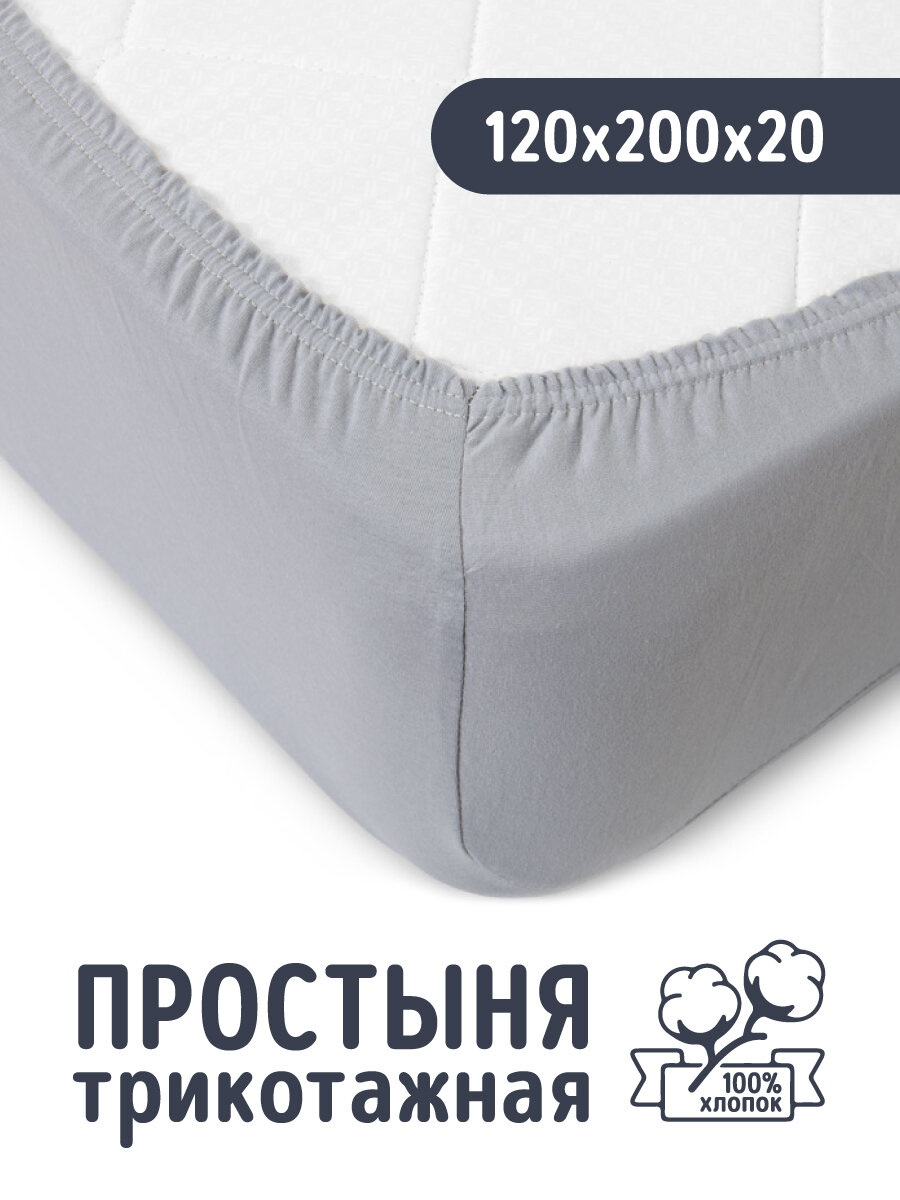 Простыня на резинке Серая, 120х200х20, трикотаж, 100% хлопок