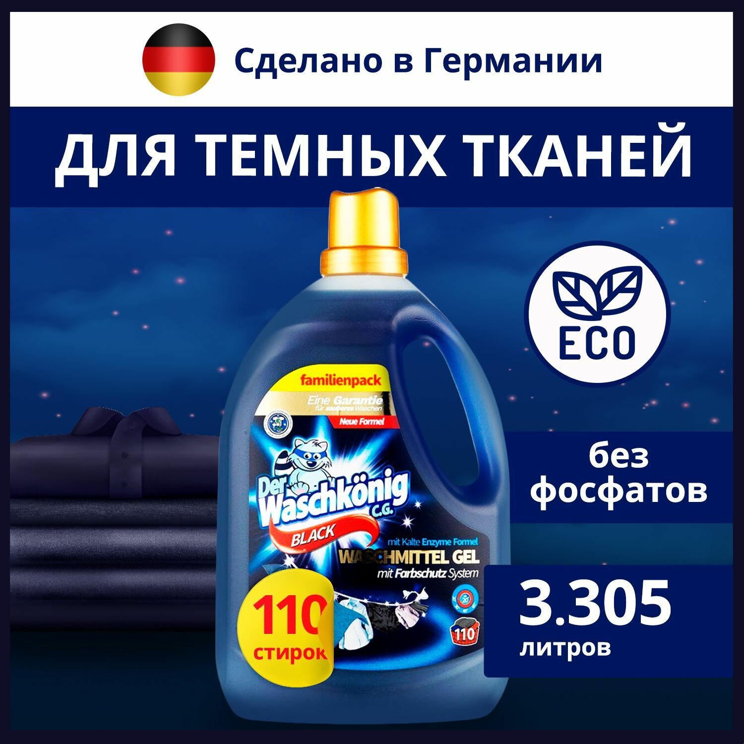 Гель для стирки темных и черных тканей Der Waschkonig Black