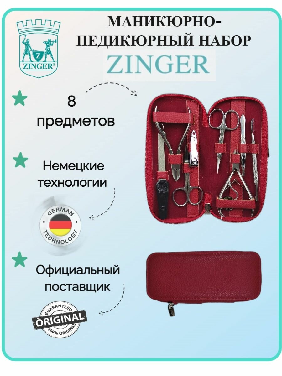 Купить Маникюрный набор, ZINGER, MS-7106, 8 предметов, чехол алый