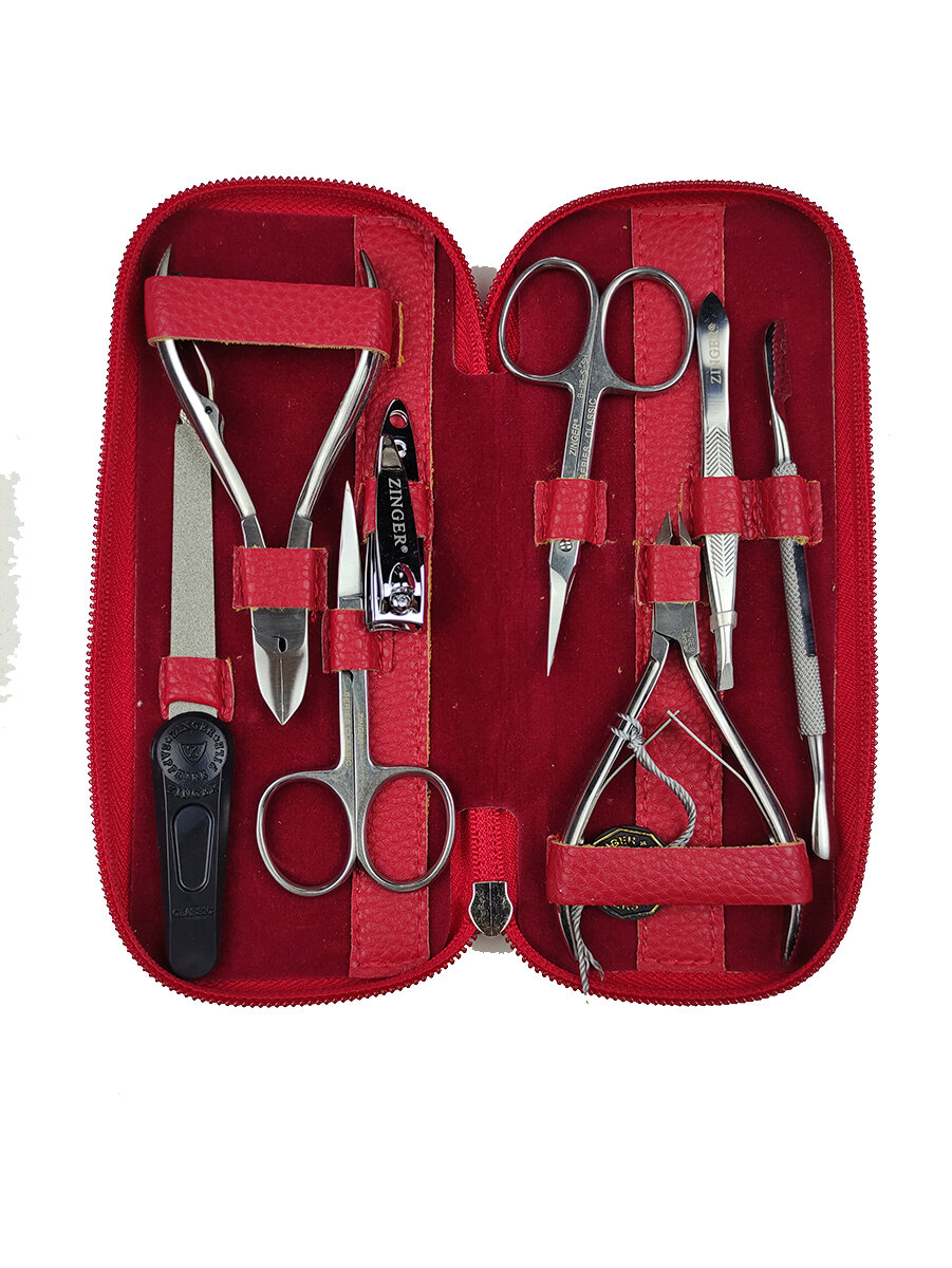 Маникюрный набор ZINGER, MS-7106, 8 предметов, чехол красный гладкий