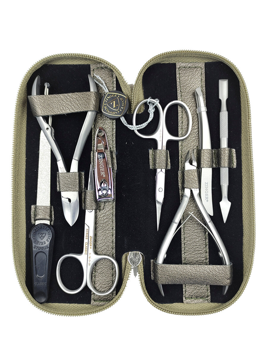 Маникюрный набор ZINGER, MS-7106, 8 предметов, чехол клетка оливковая