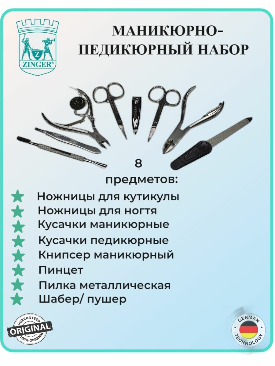 СохранитьМаникюрный набор, ZINGER, MS-7106, 8 предметов, чехол шампань интересное: