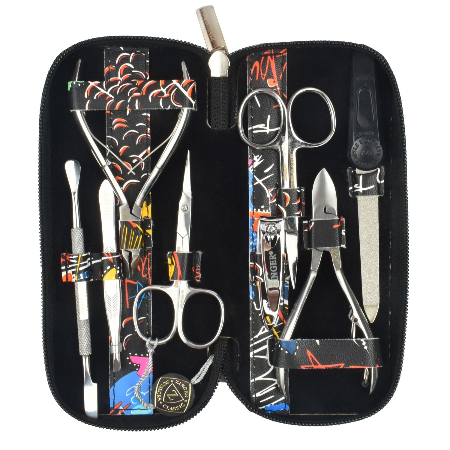 Купить Маникюрный набор, ZINGER, MS-7106, 8 предметов, чехол графити черный