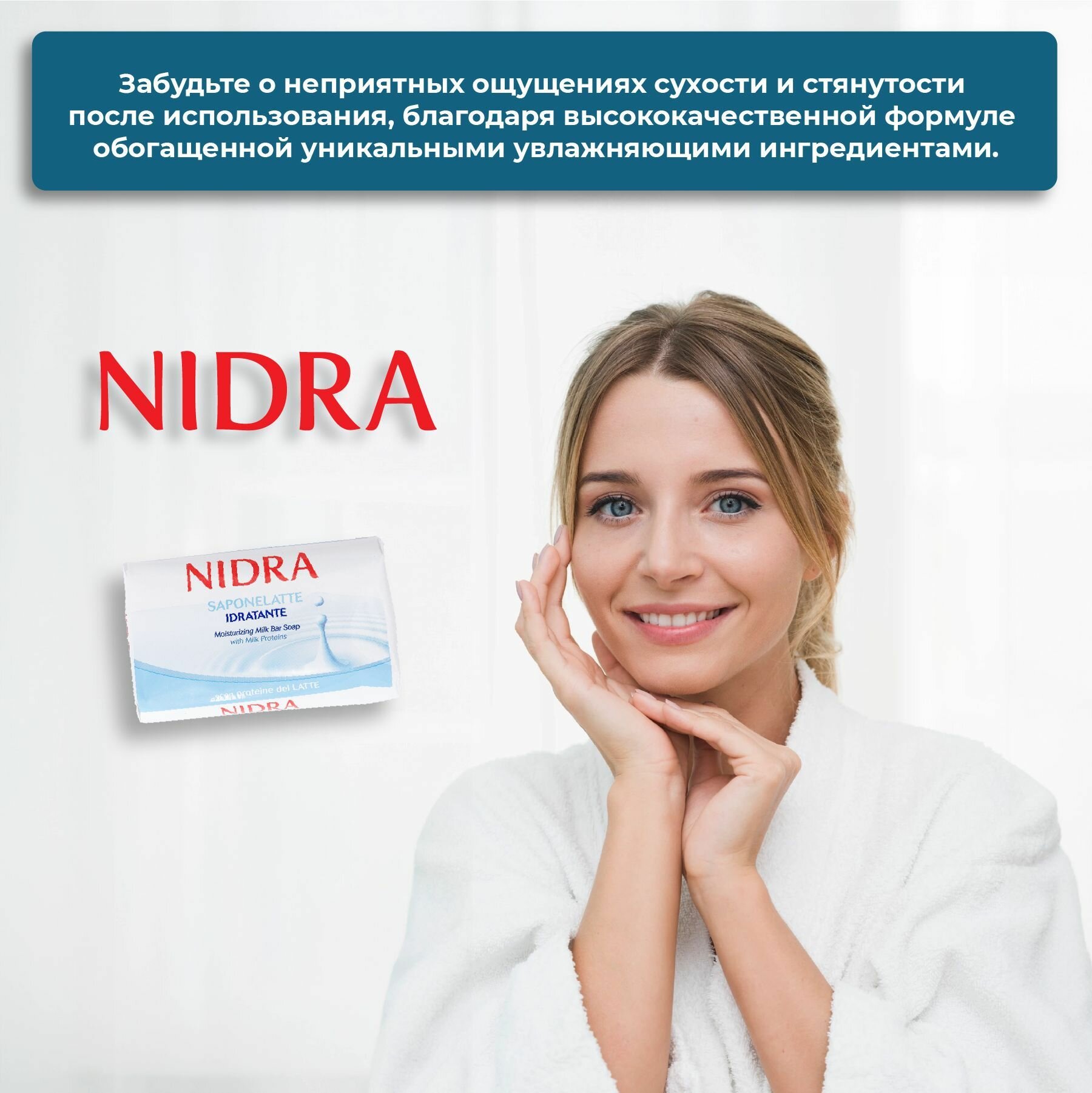 Nidra Мыло твердое увлажняющее с молочными протеинами 90гр, 6 шт