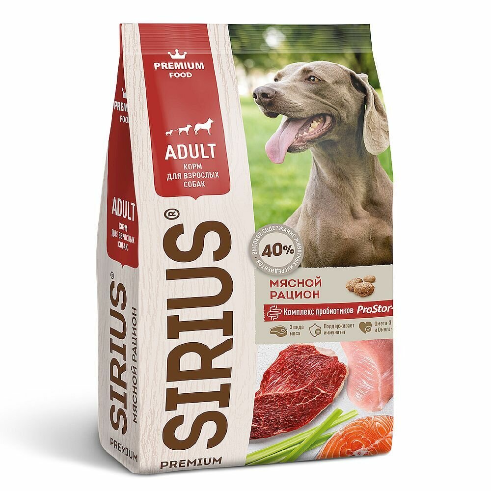 Сухой корм SIRIUS PREMIUM, Сириус для собак старше 1 года, мясной рацион, 15 кг