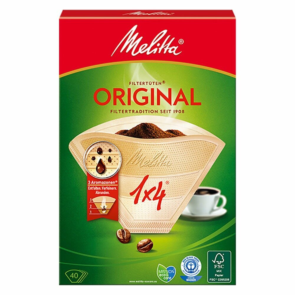 Фильтры для кофеварки Melitta original 1x4 для заваривания 40шт. кофе-пакеты в кофемашинах капельных бумажные одноразовые как ситечко