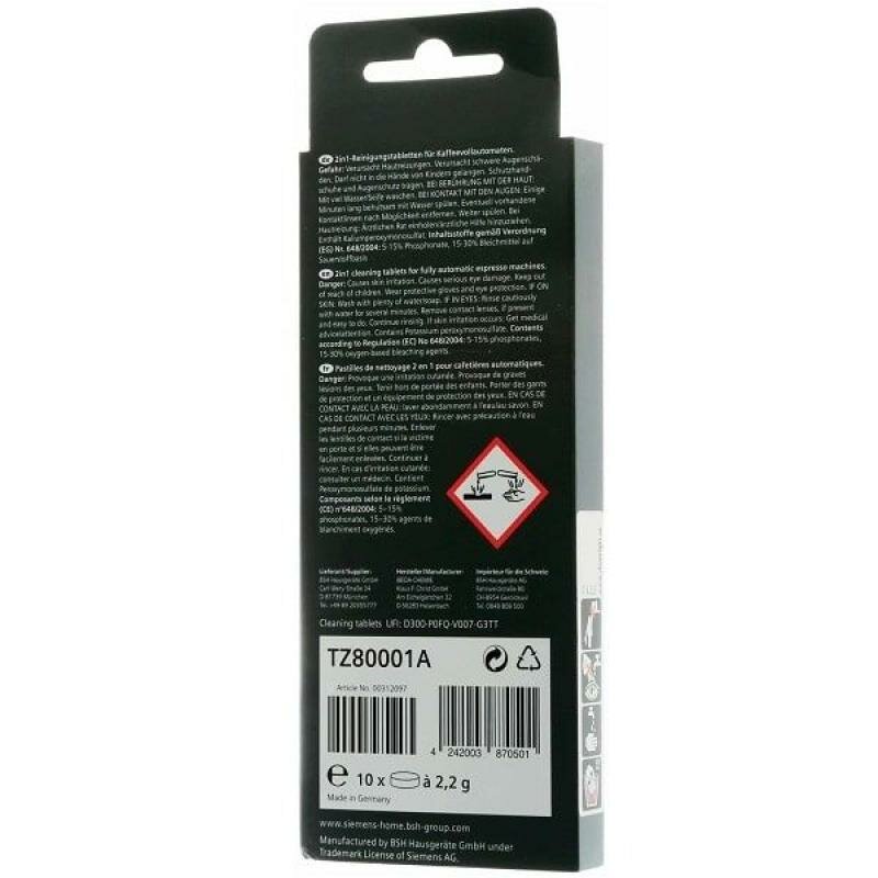 Очищающие таблетки Siemens TZ80001A, 10 шт.