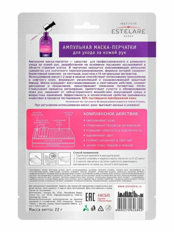 Estelare Institute Estelare Ампульная маска-перчатки для ухода за кожей рук 22 мл