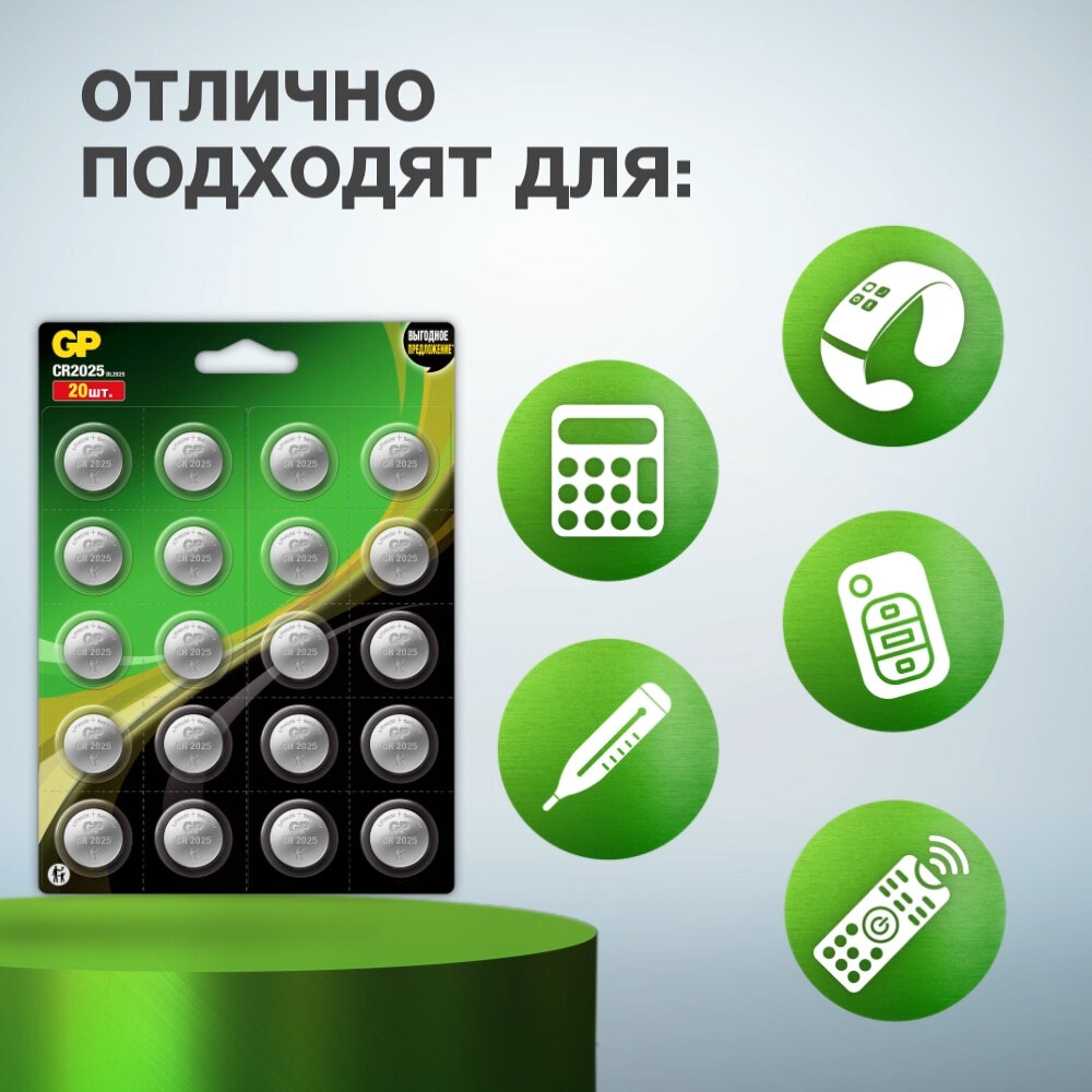 Батарейки литиевые GP CR2025, 20 шт. в упаковке