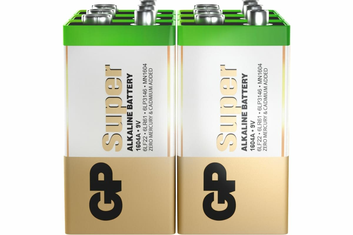 4шт Батарейка GP Super, Крона (6LR61, 6LF22, 1604A), алкали
