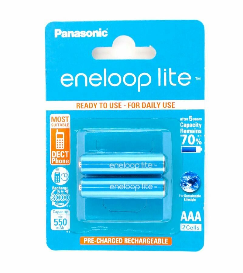 Panasonic Аккумулятор Panasonic Hi-MH eneloop lite AAA 550mAh BL2, 2шт (BK-4LCCE/2BE)