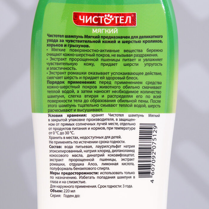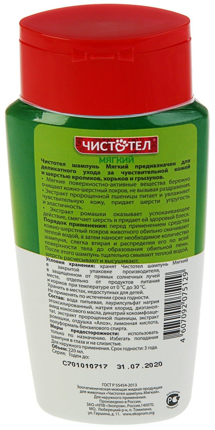 Чисто Тел Шампунь для кроликов, хорьков и грызунов Мягкий, 220 мл