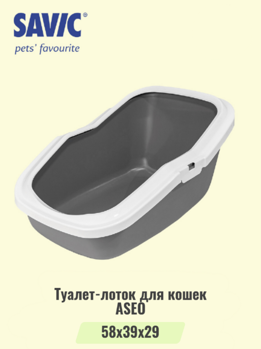 SAVIC ASEO 56 см x 39 см x 27,50 см туалет для кошек с высокими бортами серый