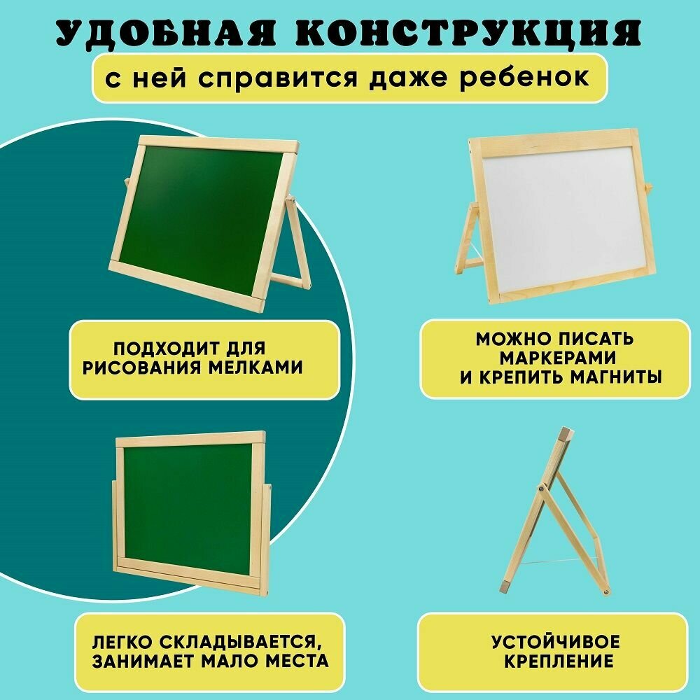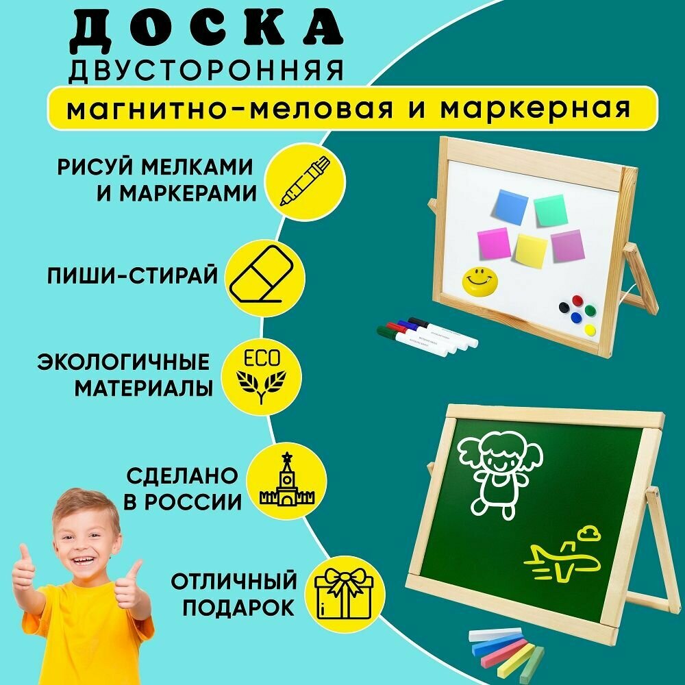 Доска деревянная магнитно-маркерно-меловая для рисования детская