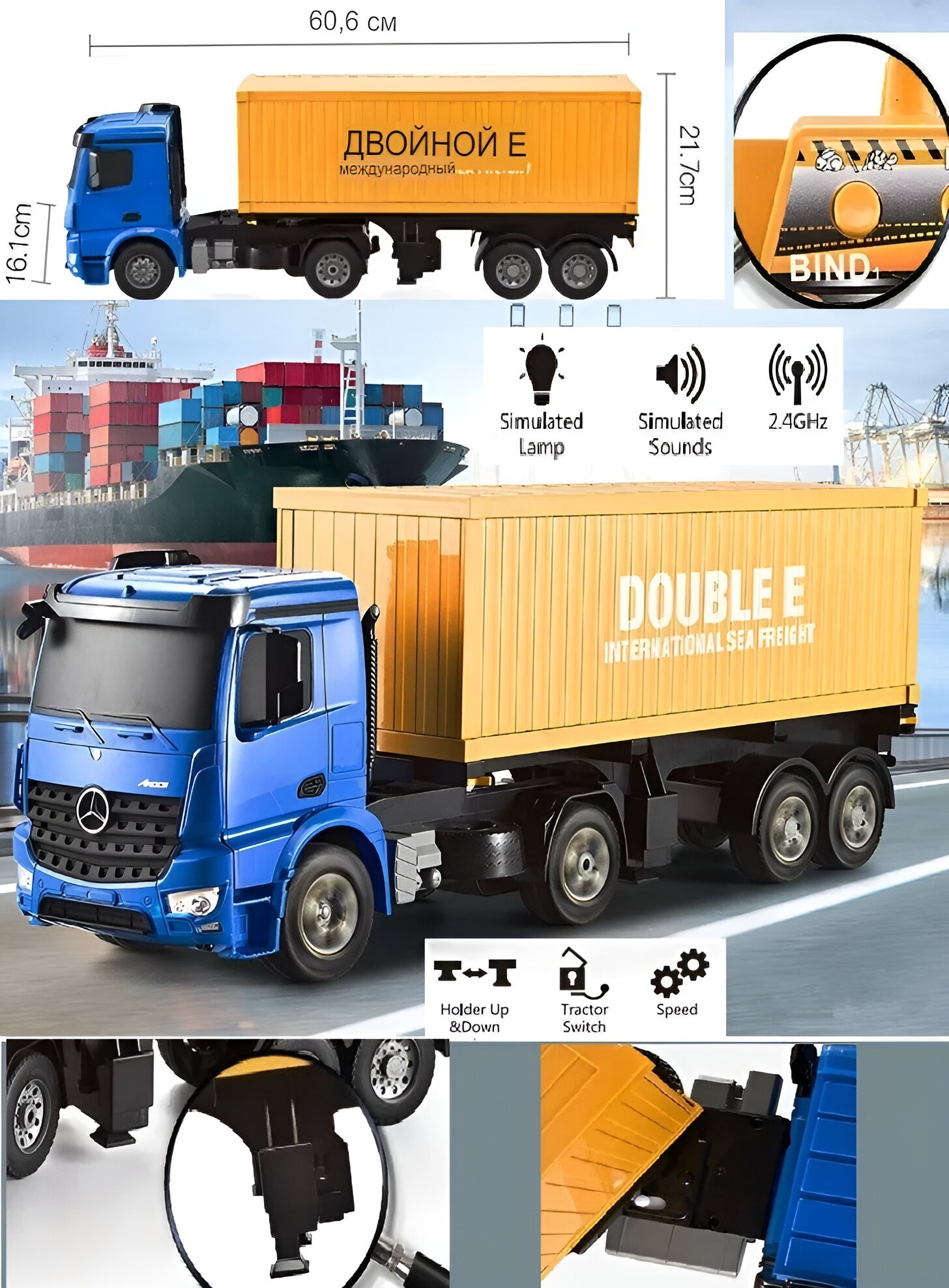 Модели машин с электродвигателем Double E Радиоуправляемый контейнеровоз Double E Mercedes-Benz Arocs 1:20 2.4G - E564-003