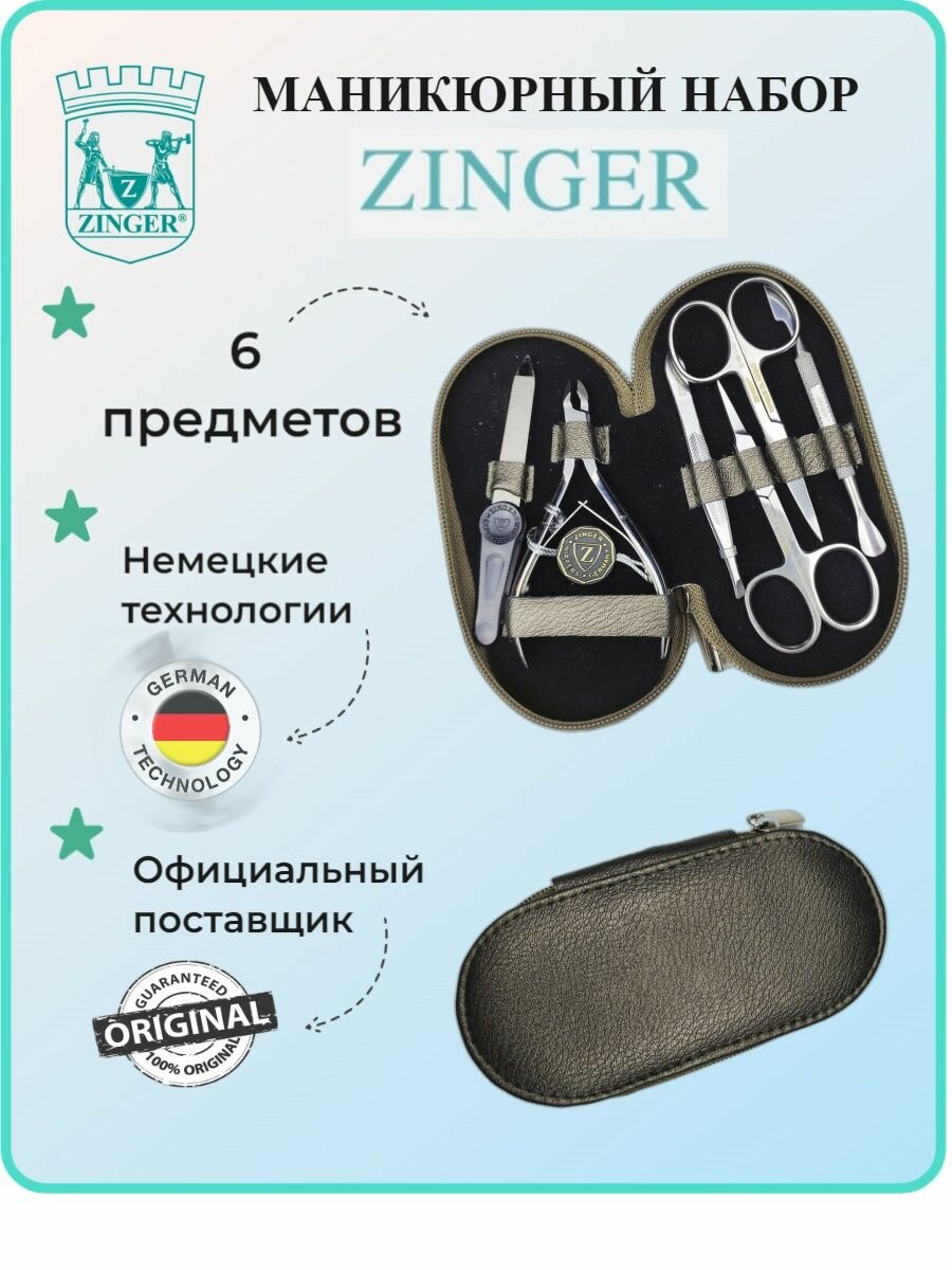 Маникюрный набор Zinger 7104, 6 предметов, серебристый/коричневый лофт