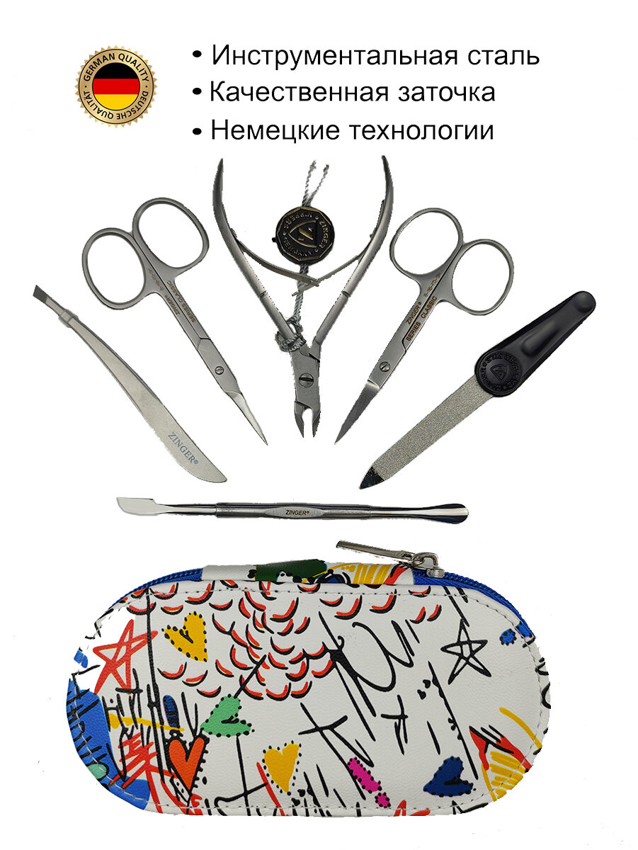 СохранитьМаникюрный набор ZINGER на молнии MS-7104, 6 предметов, чехол графити белый интересное: