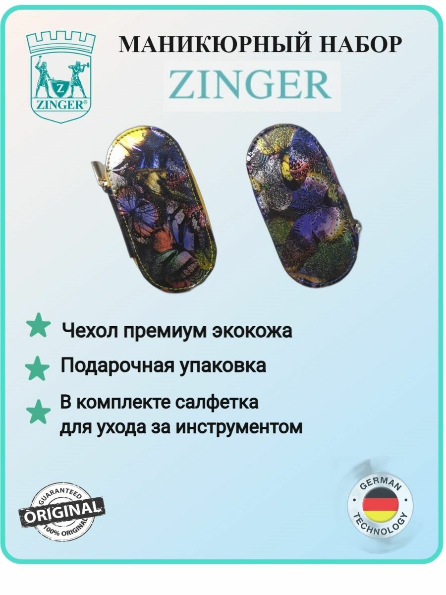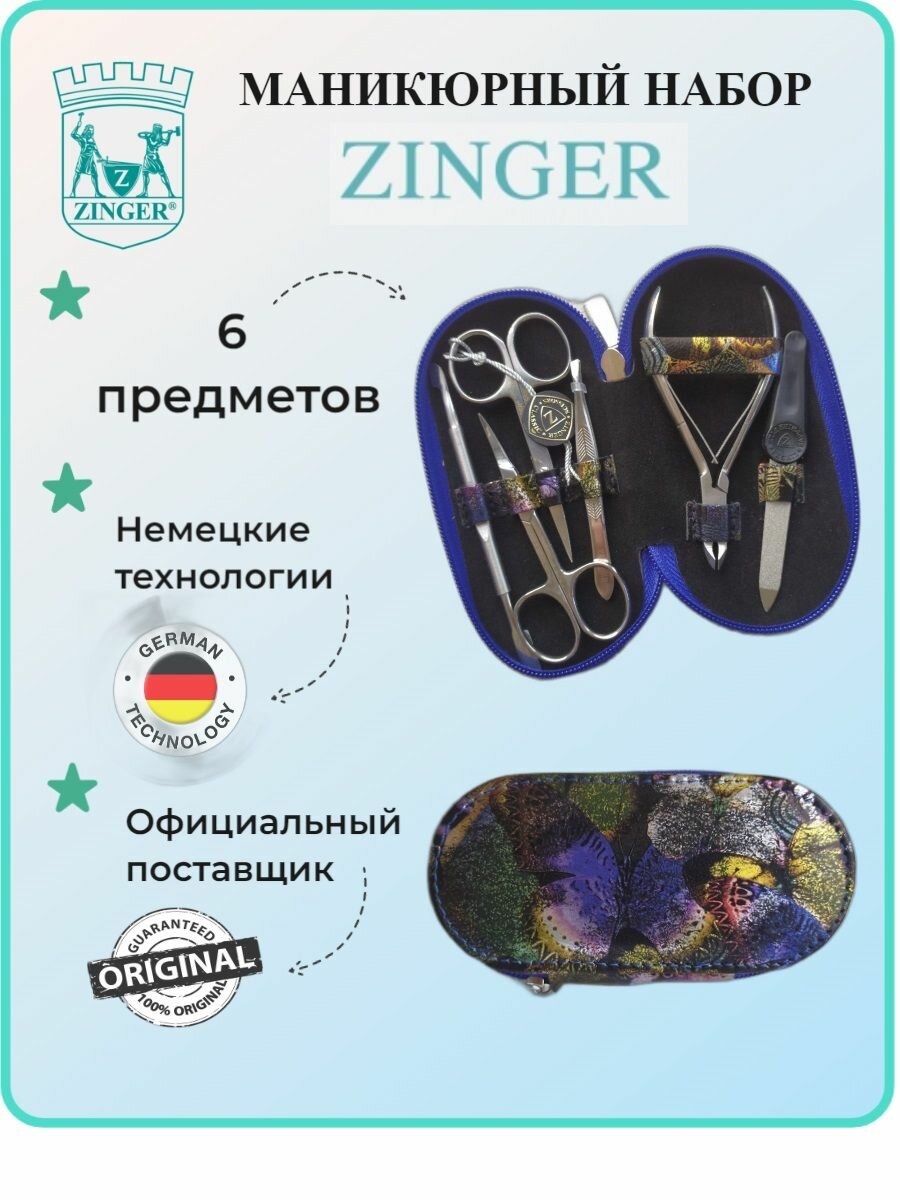 СохранитьМаникюрный набор ZINGER на молнии MS-7104, 6 предметов, чехол синие бабочки интересное:
