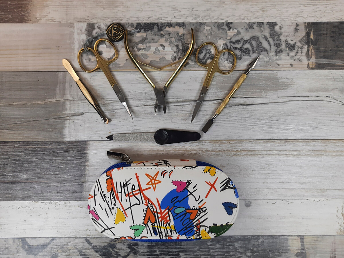 Купить Маникюрный набор ZINGER на молнии MS-7104, 6 предметов, чехол графити белый в золоте