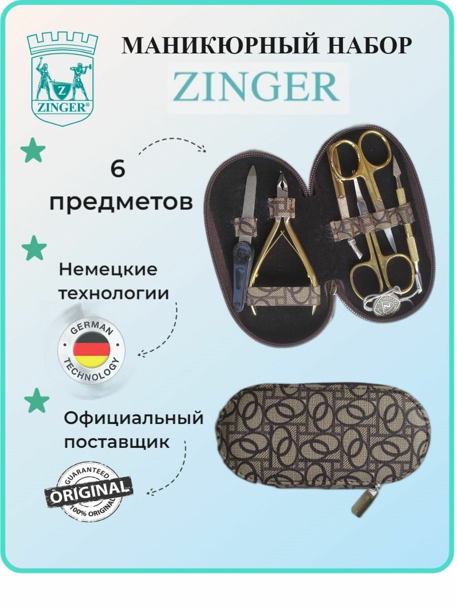 Маникюрный набор Zinger 7104, 6 предметов, серебристый/коричневый лофт