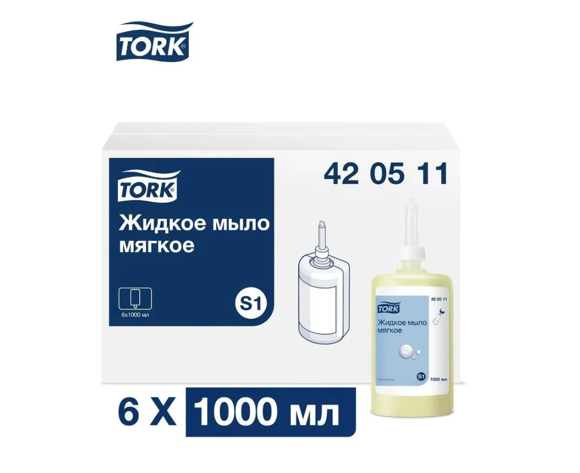 Жидкое мыло для рук в картриджах торк S1 420511 мягкое, 1 упаковка - 6 картриджей по 1000 мл.