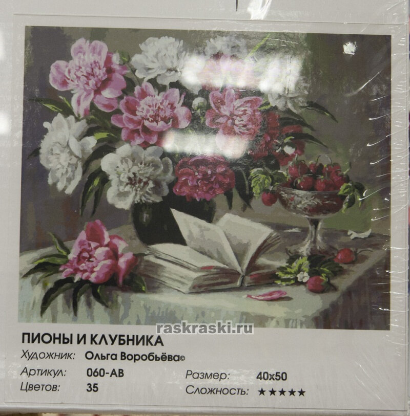 Картина по номерам на холсте 40 на 50 см Пионы и клубника - Белоснежка [060-АВ]