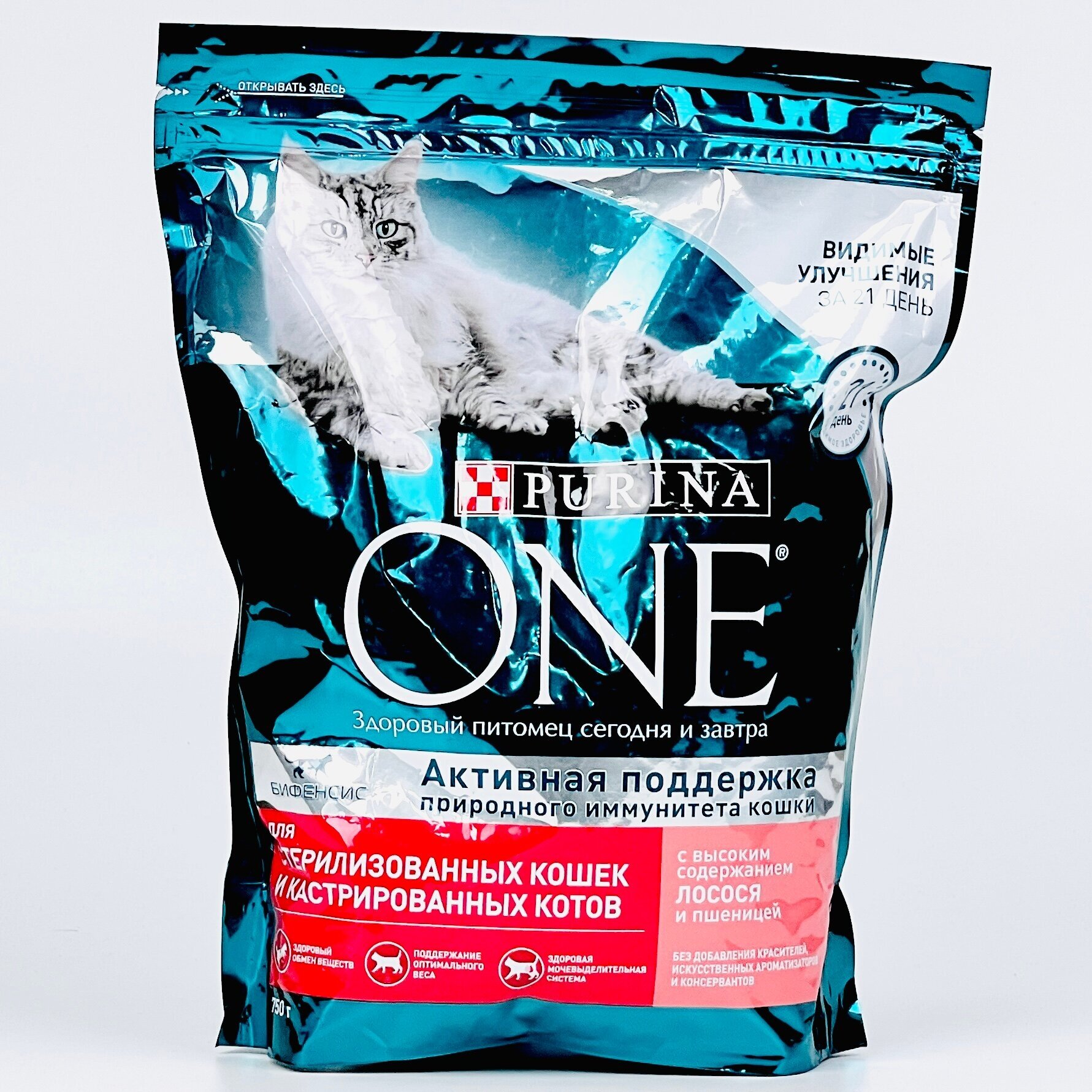 Сухой корм Purina ONE полнорационный для стерилизованных кошек и кастрированных котов, с высоким содержанием лосося, 1,5 кг