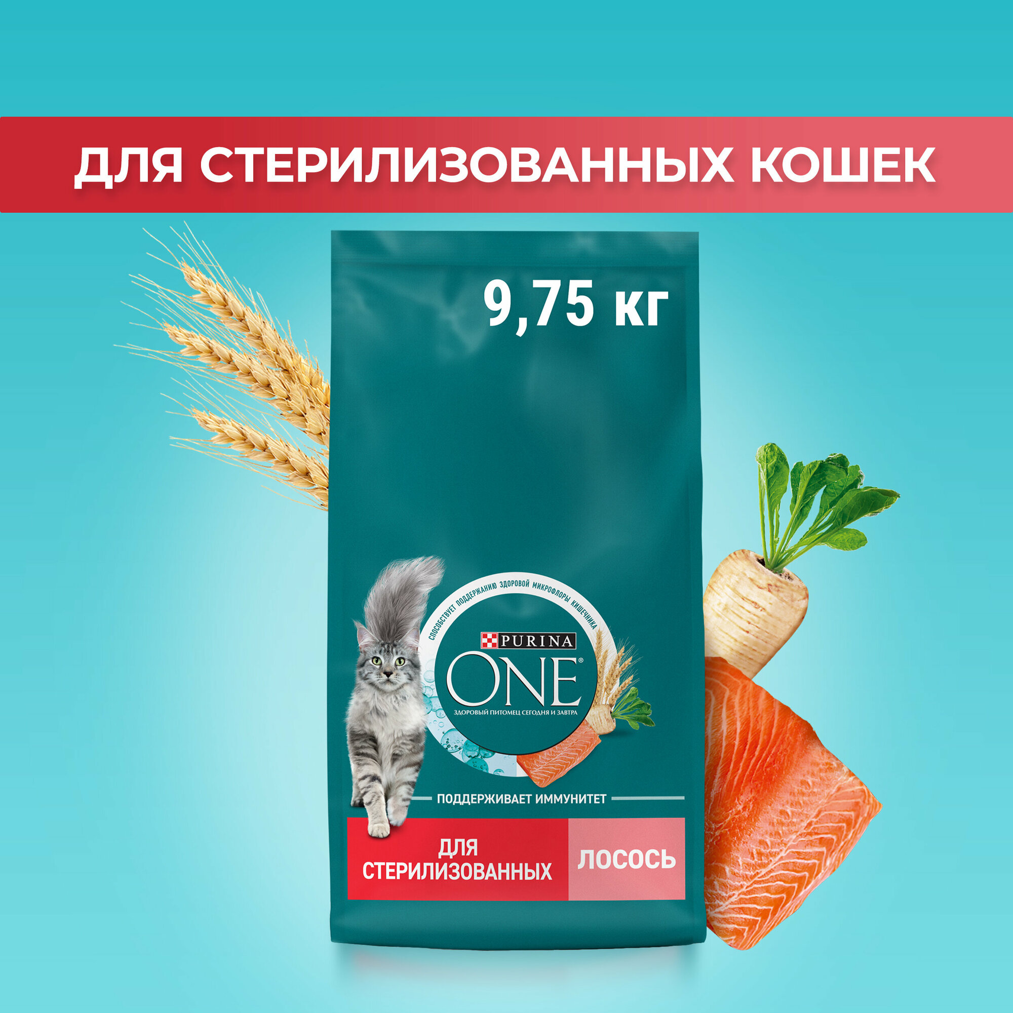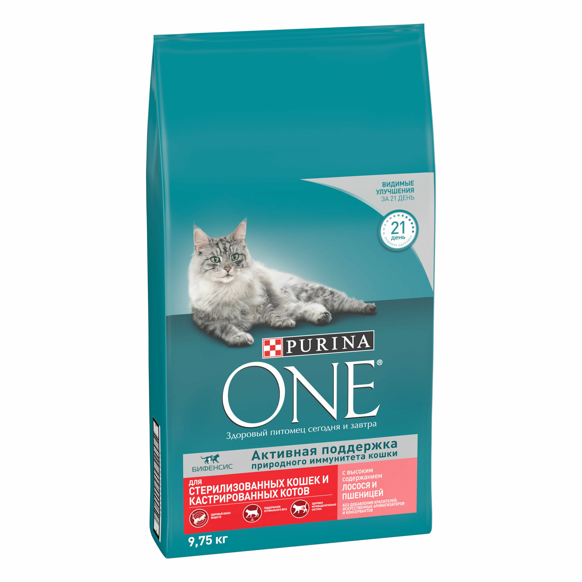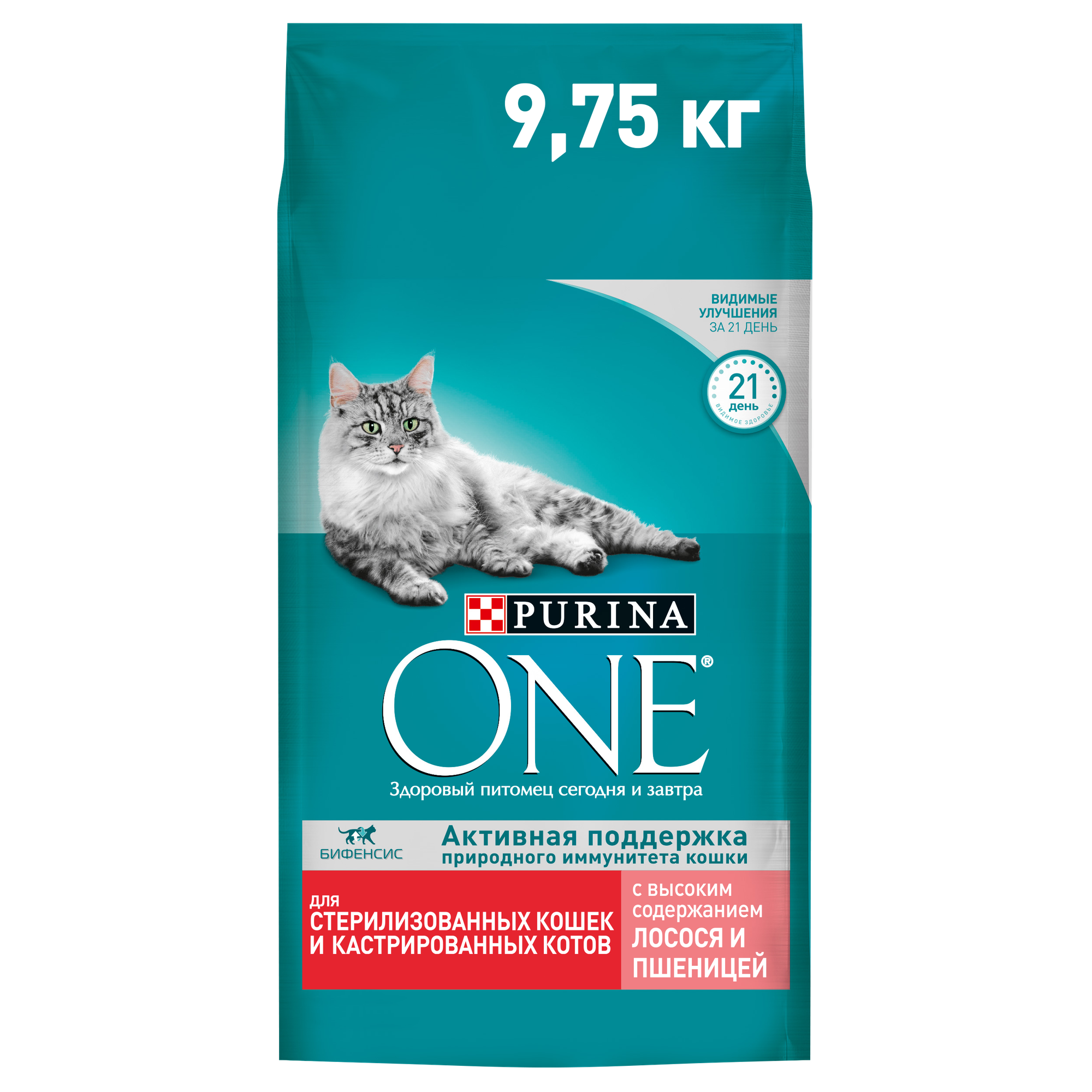 Купить PURINA ONE 9,75 кг сухой корм для стерилизованных кошек и кастрированных котов, с высоким содержанием лосося и пшеницей 1 шт