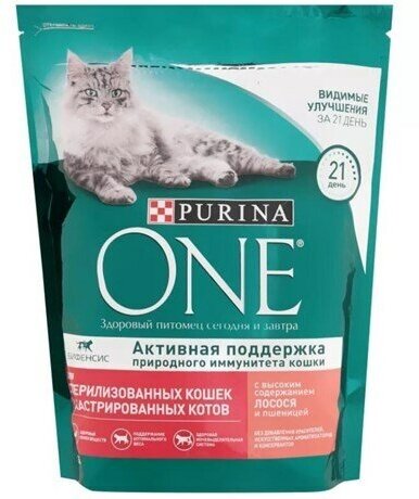 Сухой корм Purina ONE для стерилизованных кошек и котов с лососем и пшеницей, 750 г