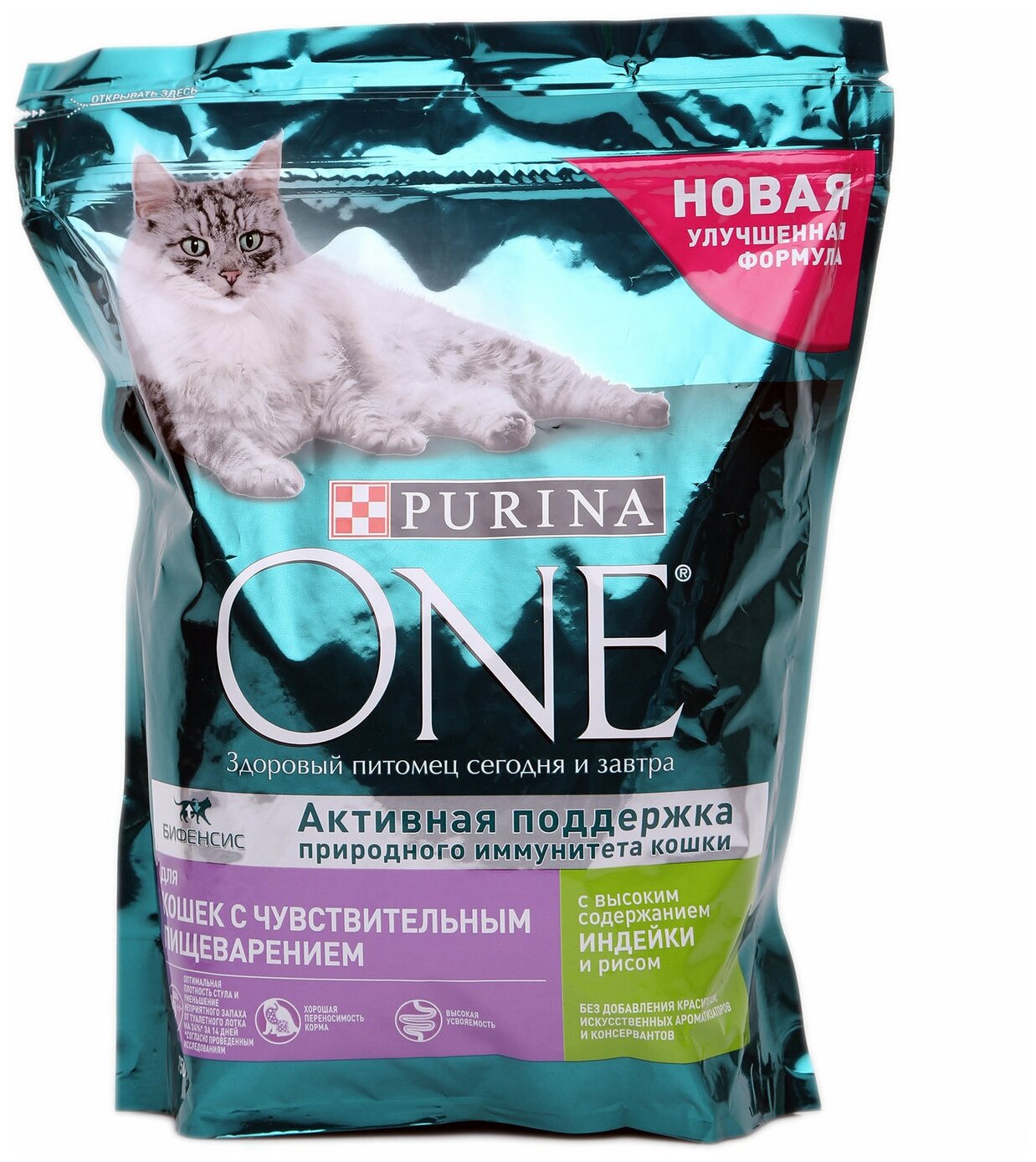 Сухой корм Purina ONE для кошек с чувствительным пищеварением, с высоким содержанием индейки, 1,5 кг