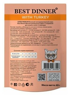 Корм для кошек BEST DINNER Мясные деликатесы Суфле индейка пауч 85г (упаковка - 24 шт)