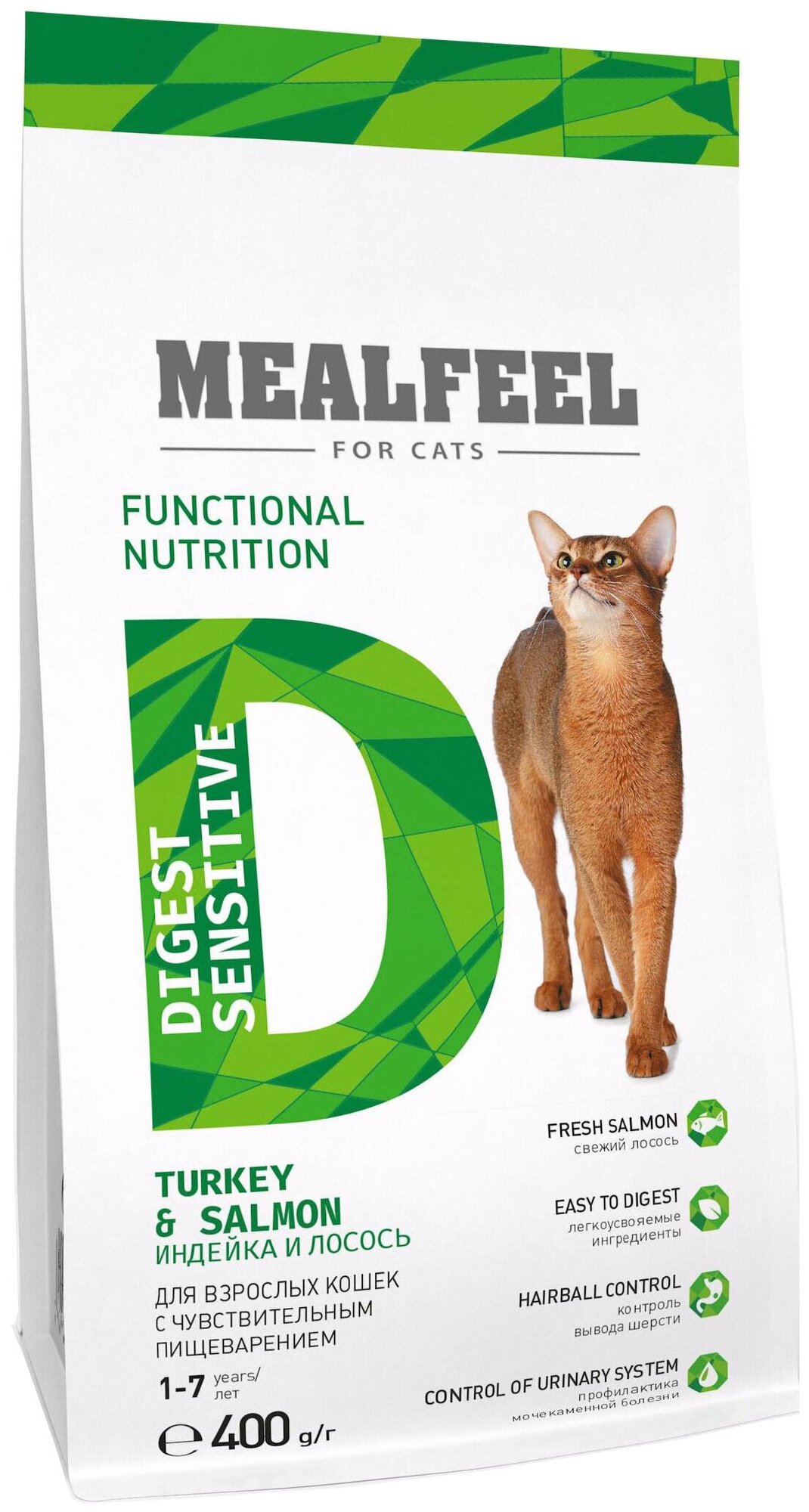MEALFEEL DIGEST SENSITIVE Сухой корм для кошек с чувствительным пищеварением Индейка/Лосось 1,5 кг