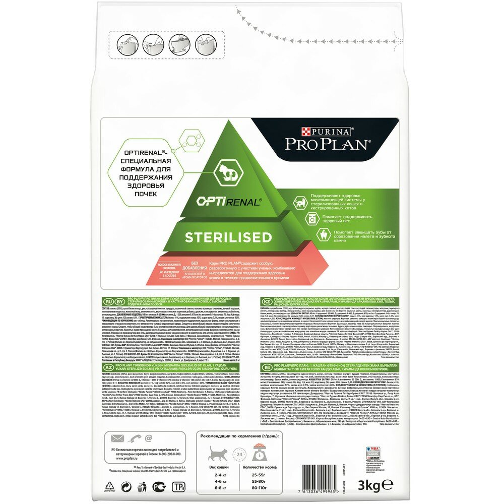Сухой корм для кошек PRO PLAN Sterilised для стерилизованных кошек с лососем 3 кг, 71247