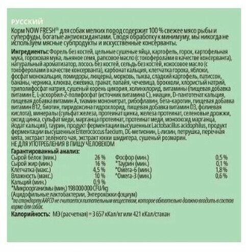 NOW FRESH - Корм для собак малых пород всех возрастов, с форелью, лососем и овощами, беззерновой (fresh small breed recipe fish grain free) 9.98кг