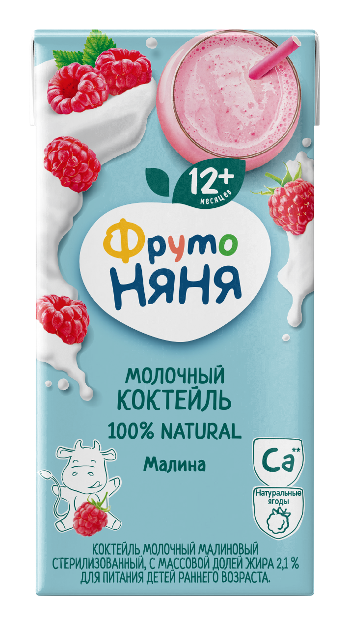 Коктейль молочный фрутоняня Малиновый, для питания детей раннего возраста 2,1%, без змж, 200мл