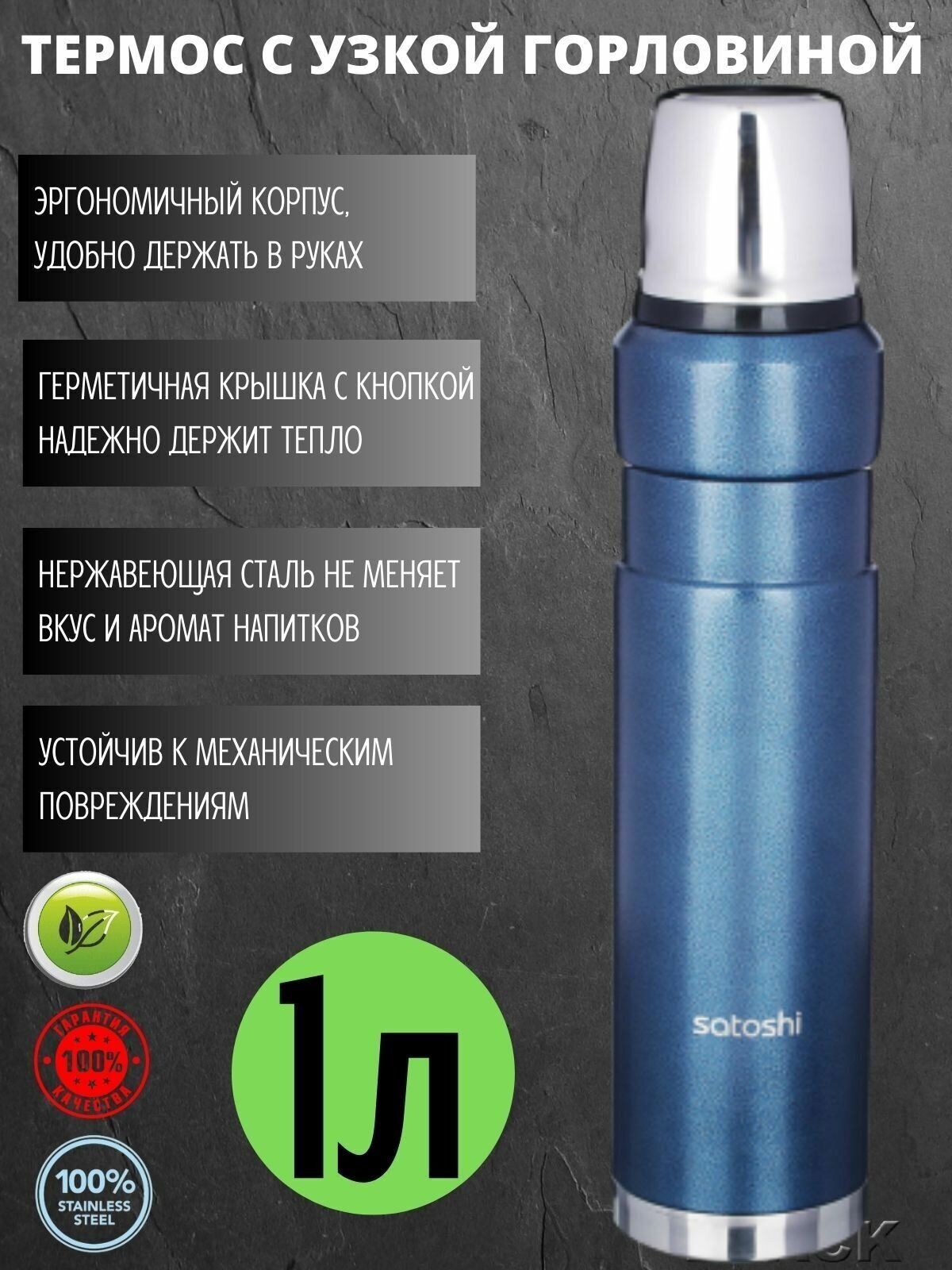 Термос SATOSHI Торнадо 1,0л, синий