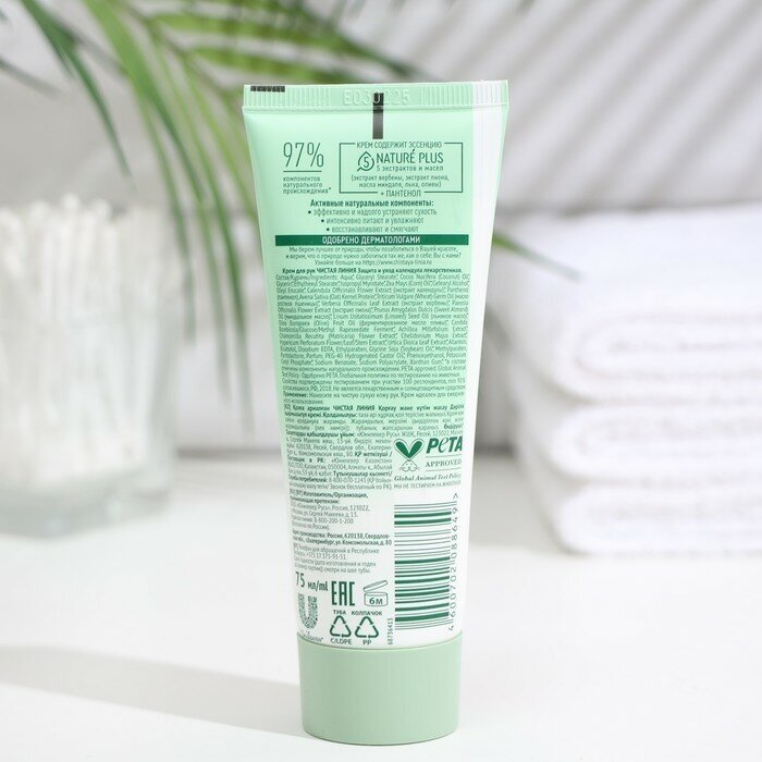 Крем для рук чистая линия Защита и уход, Пантенол и календула, 75 мл