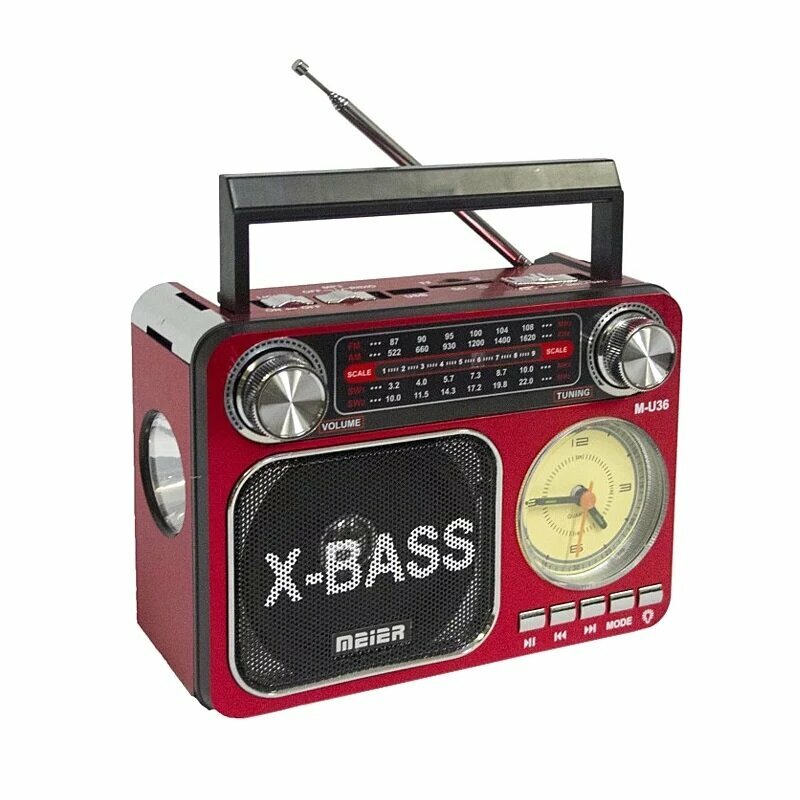 Ниже Вы можете прочитать отзывы на Bluetooth Радиоприемник Meier M-U36 USB, microSD, фонарь, часы, красный, ознакомится с подробными характеристиками, посмотреть интересные обзоры и фотографии на Bluetooth Радиоприемник Meier M-U36 USB, microSD, фонарь, часы, красный.