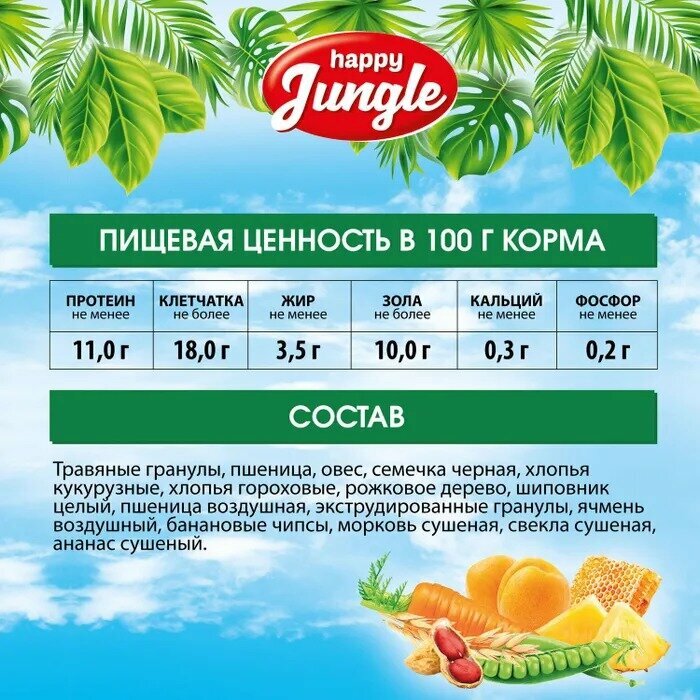 HAPPY JUNGLE Сбалансированный сухой корм для морских свинок, 400 гр