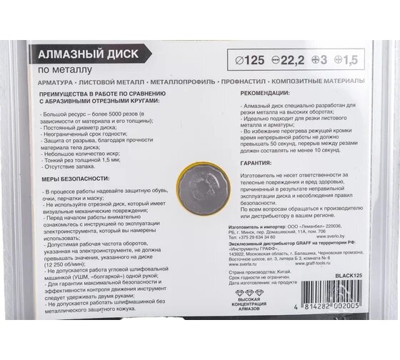 Отрезной алмазный диск по металлу для УШМ GRAFF GDDM125B интересное: