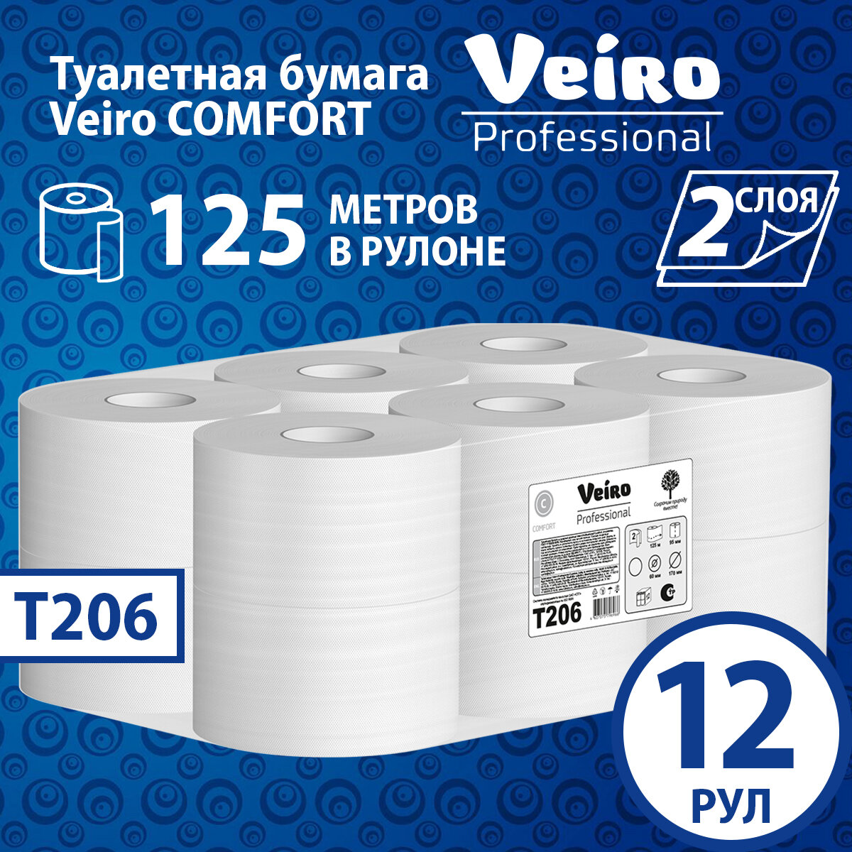 Бумага туалетная Veiro Professional Comfort T206, двухслойная, 12 рулонов по 125 м