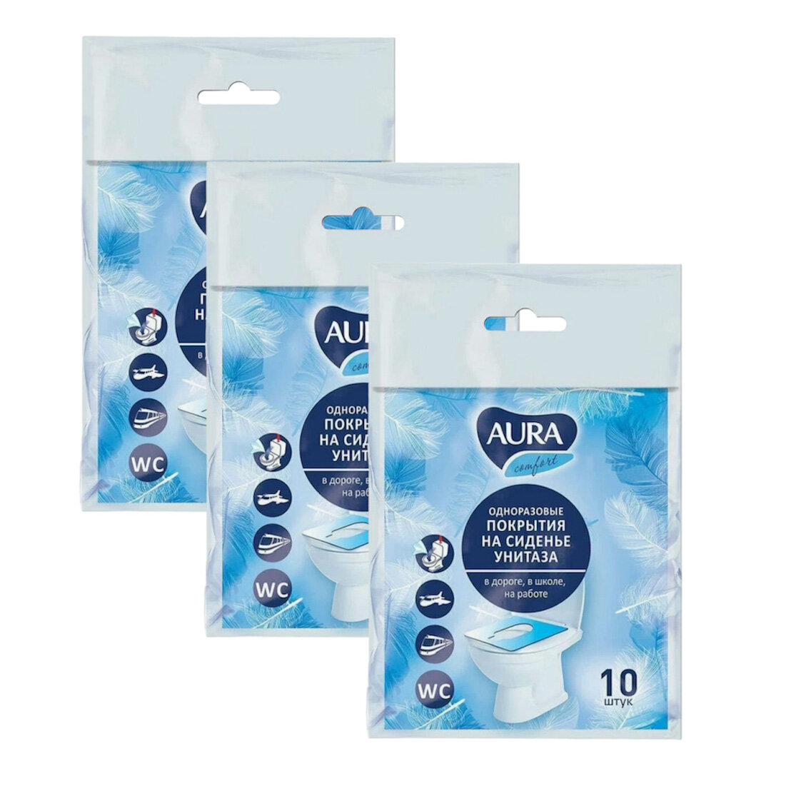 Покрытия на унитаз Aura Comfort 3 упаковки 10 шт. интересное: