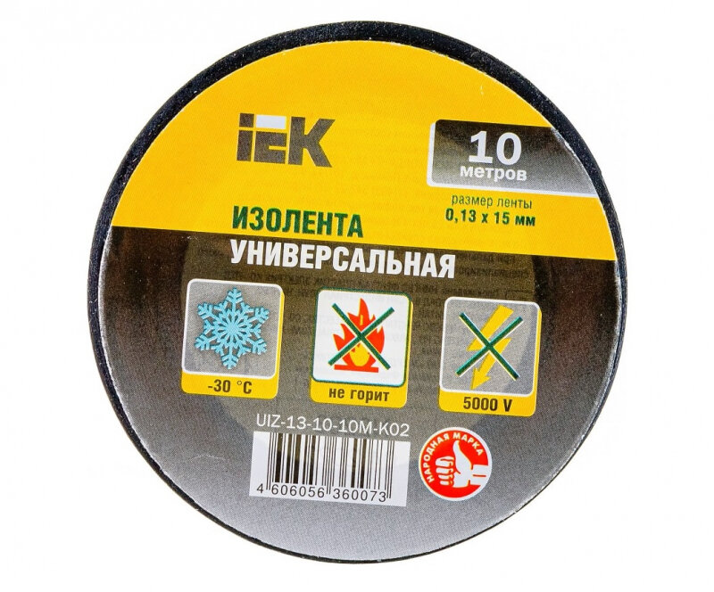 Ниже Вы можете прочитать отзывы на Изолента IEK 0,13х15 мм черная 10 метров UIZ-13-10-10M-K02, ознакомится с подробными характеристиками, посмотреть интересные обзоры и фотографии на Изолента IEK 0,13х15 мм черная 10 метров UIZ-13-10-10M-K02.