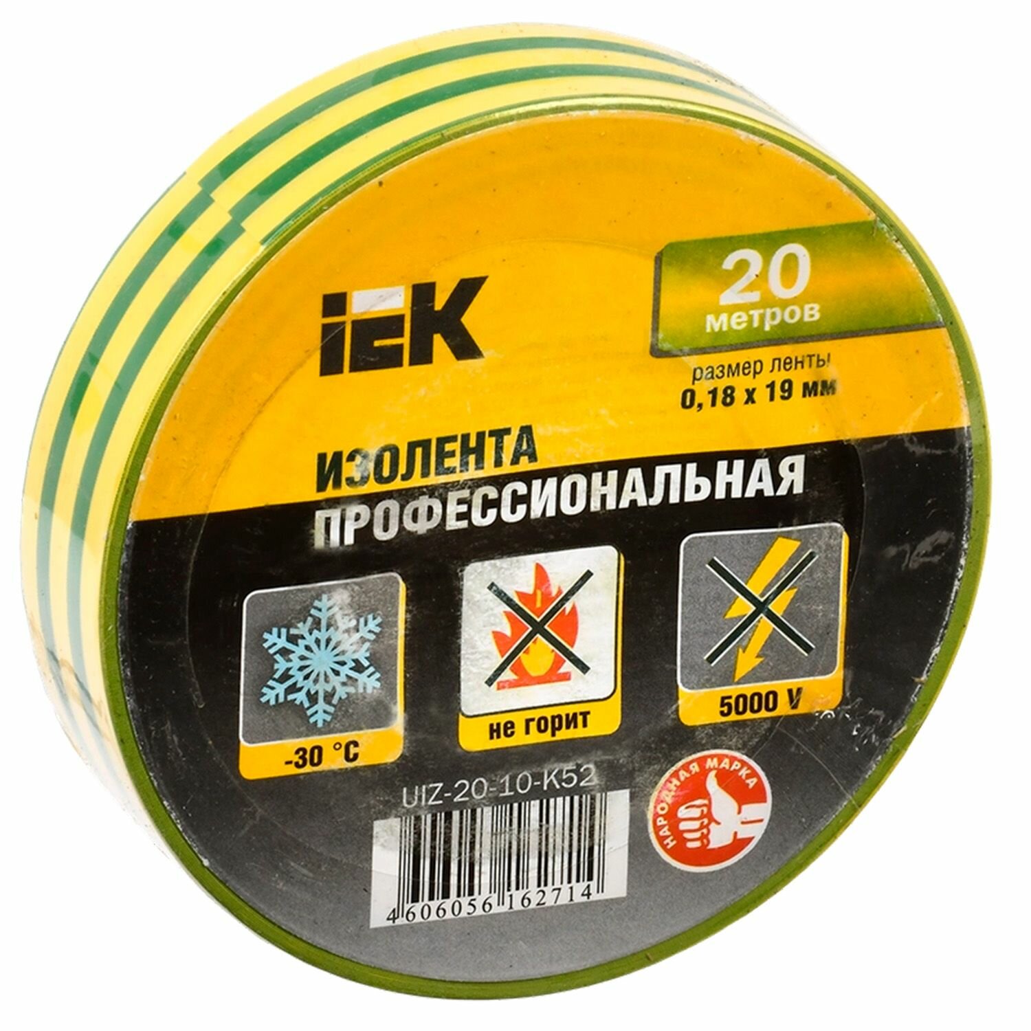 Iek UIZ-20-10-K52 Изолента 0,18х19 мм желто-зеленая 20 метров ИЭК