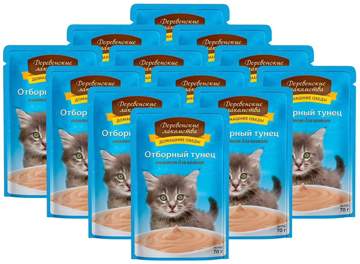 Корм Деревенские лакомства "Отборный тунец" (паштет) для котят, 70 г x 12 шт