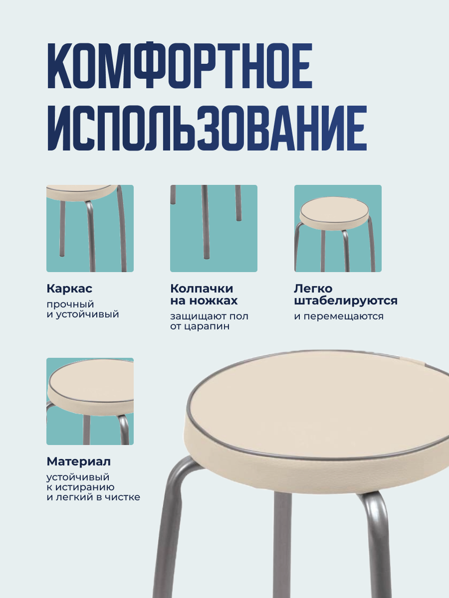 Табурет "Фабрик 2" (тф02/сс светло-серый) на 4-х опорах, мягкое круглое сидение, легко штабелируются .