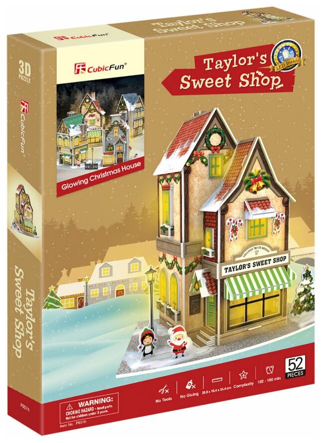 3D Пазл с LED - подсветкой Новогодний магазин сладостей, 52 детали (P801h) интересное: