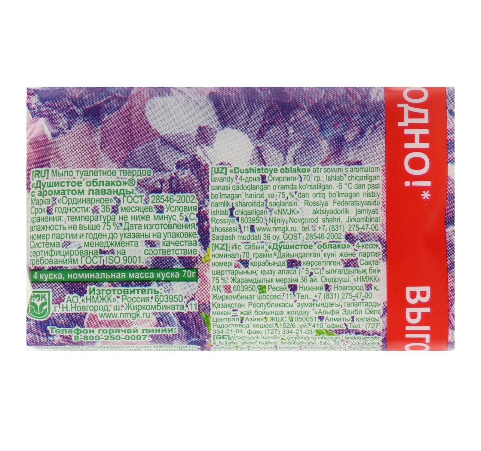 Нмжк Мыло туалетное "Душистое облако" Лаванда 4*70 г