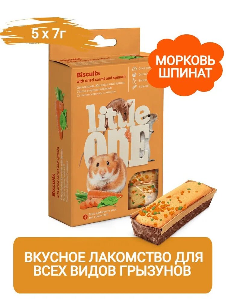 Купить Little One Бисквиты с морковью и шпинатом для всеядных грызунов, 5х7 г